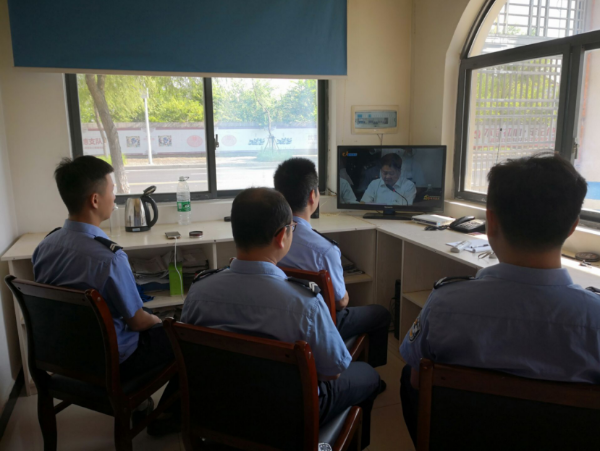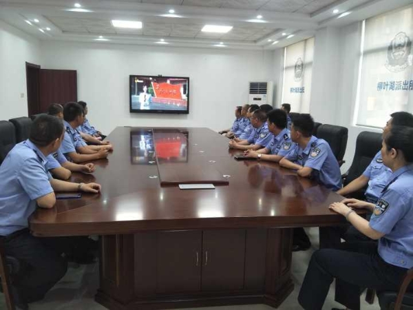 图为柳叶湖公安分局、派出所党员集中收看全市庆祝建党97周年座谈会